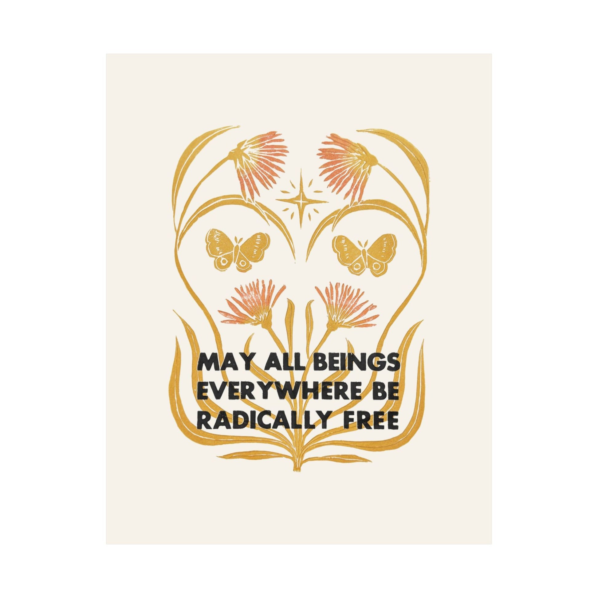 The original artwork for this piece was created by Adria Kaufman, incorporating hand carved linocut and vintage metal type run through a vintage letterpress machine.